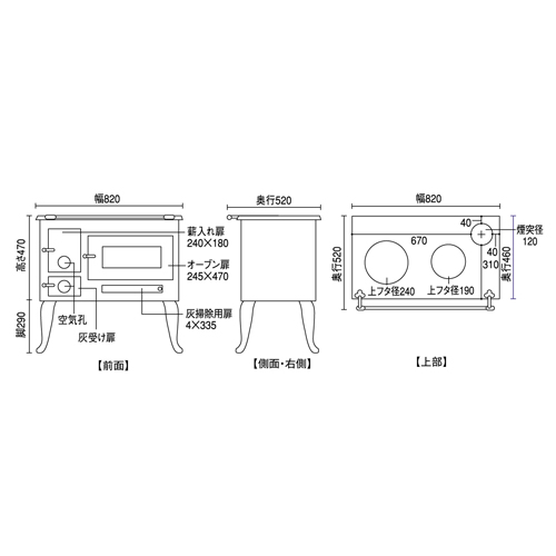 オーブン下部と左側がストーブなっており、ここで発生した熱が